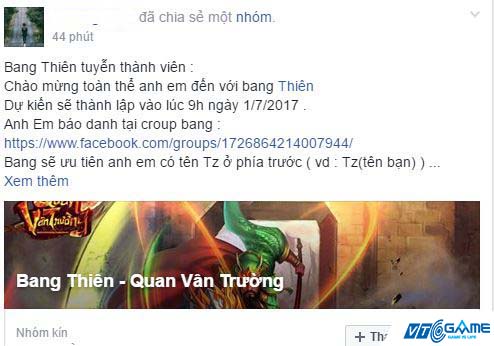 Trong khi người chơi game tăng vọt nhanh chóng thì group Quan Vân Trường cũng chả chịu kém cạnh. Khắp nơi đều là hình ảnh và status kêu gọi chiêu mộ nhân tài tham gia vào bang của mình, có bang còn mở cả offline sớm để hội ngộ “anh em” và đàm đạo về bí quyết chơi game.